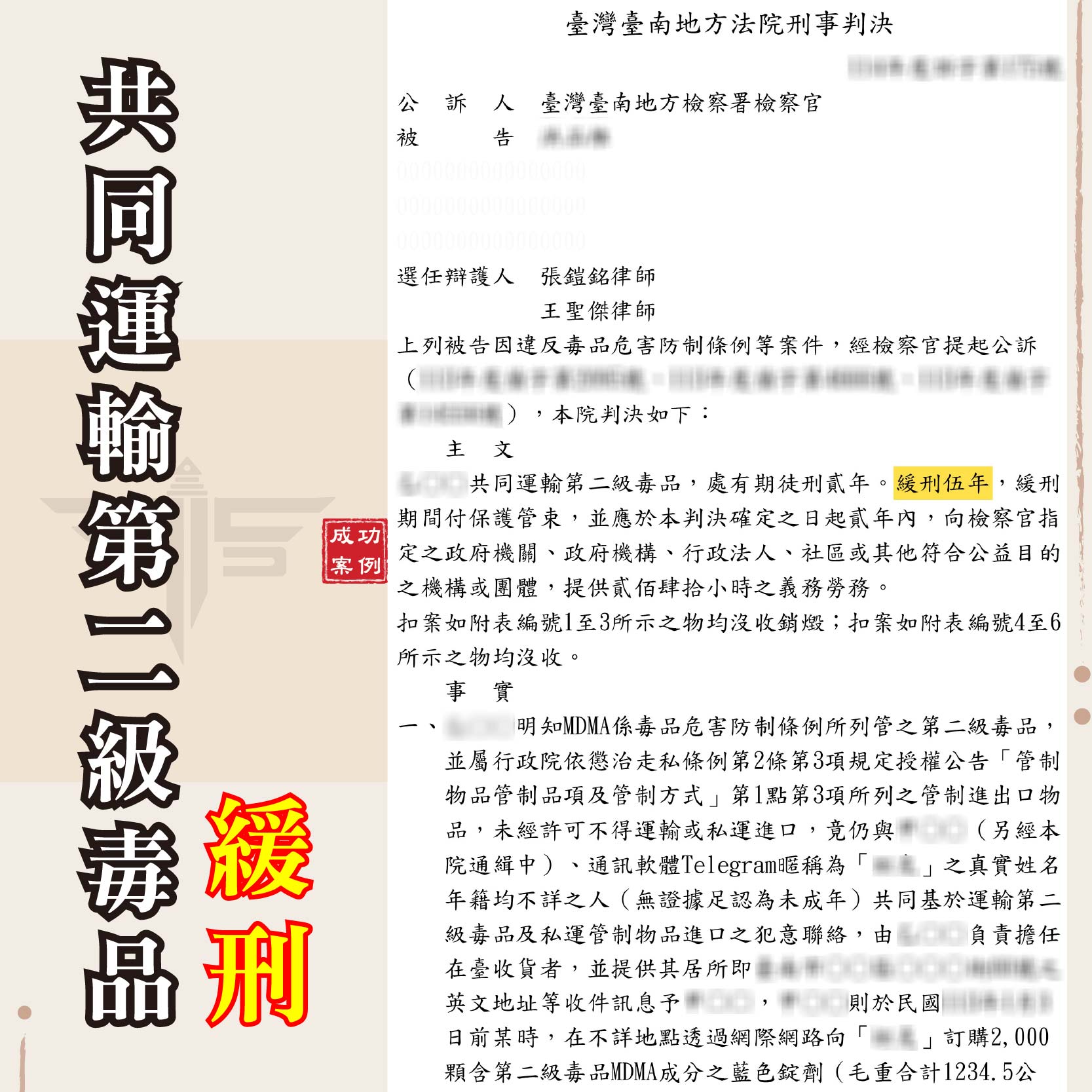 值得強調的是,運輸毒品超過 1 公斤,在實務上幾乎必然會入監服刑,緩刑判決極為罕見。本案在律師團隊積極爭取下,最終仍成功獲得緩刑,堪稱難得成果。