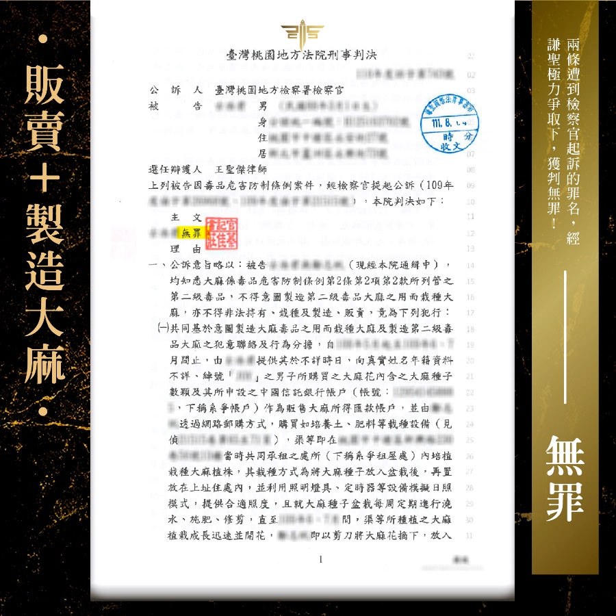 〚台北毒品案件訴訟〛製造又販賣二級毒品大麻-無罪