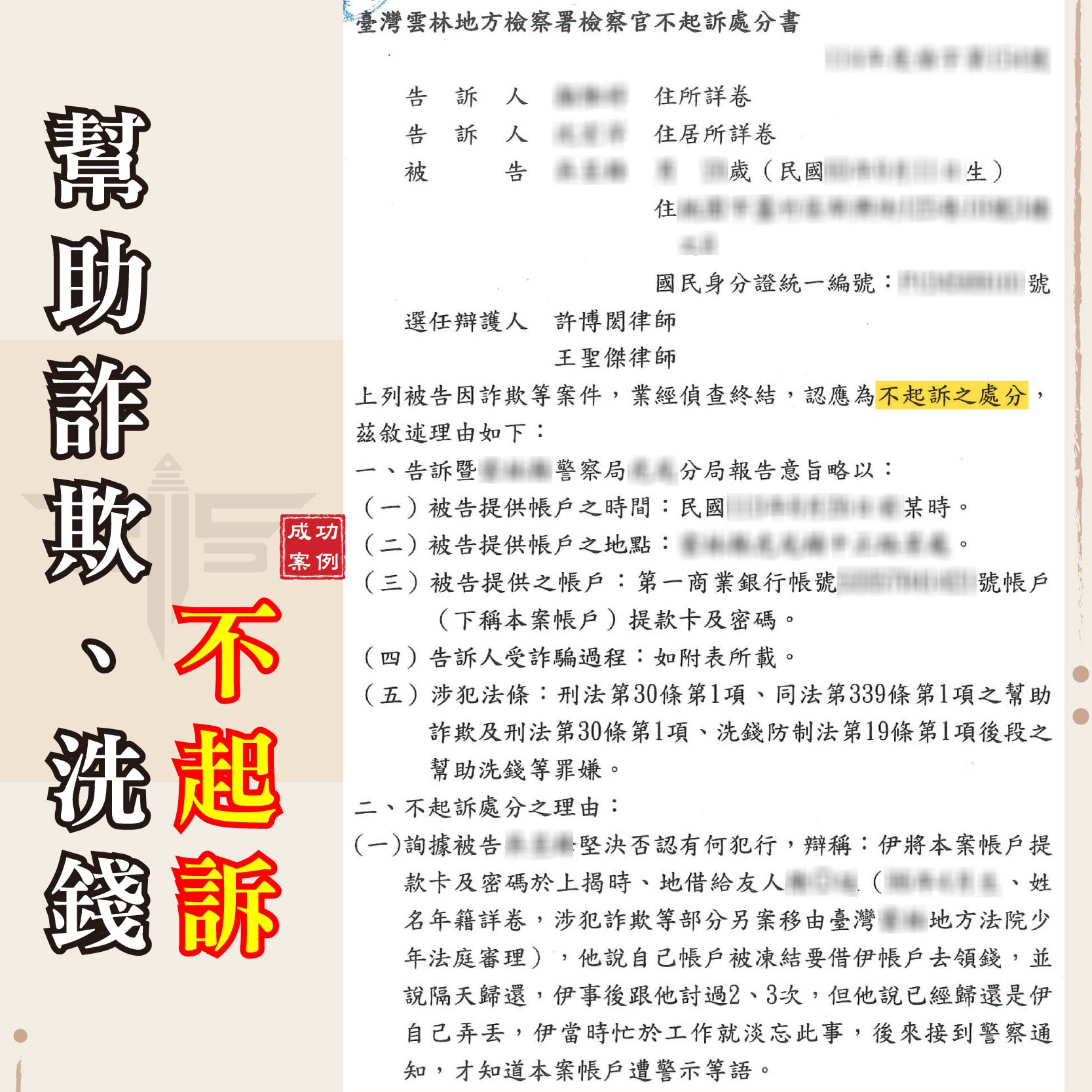 ■ 案件類型:涉嫌幫助詐欺、幫助洗錢