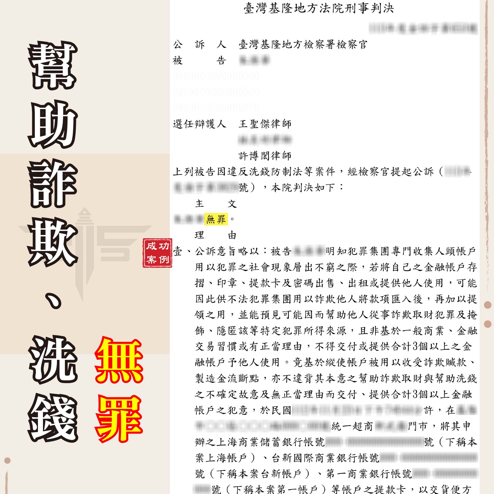 謙聖無罪案例分享