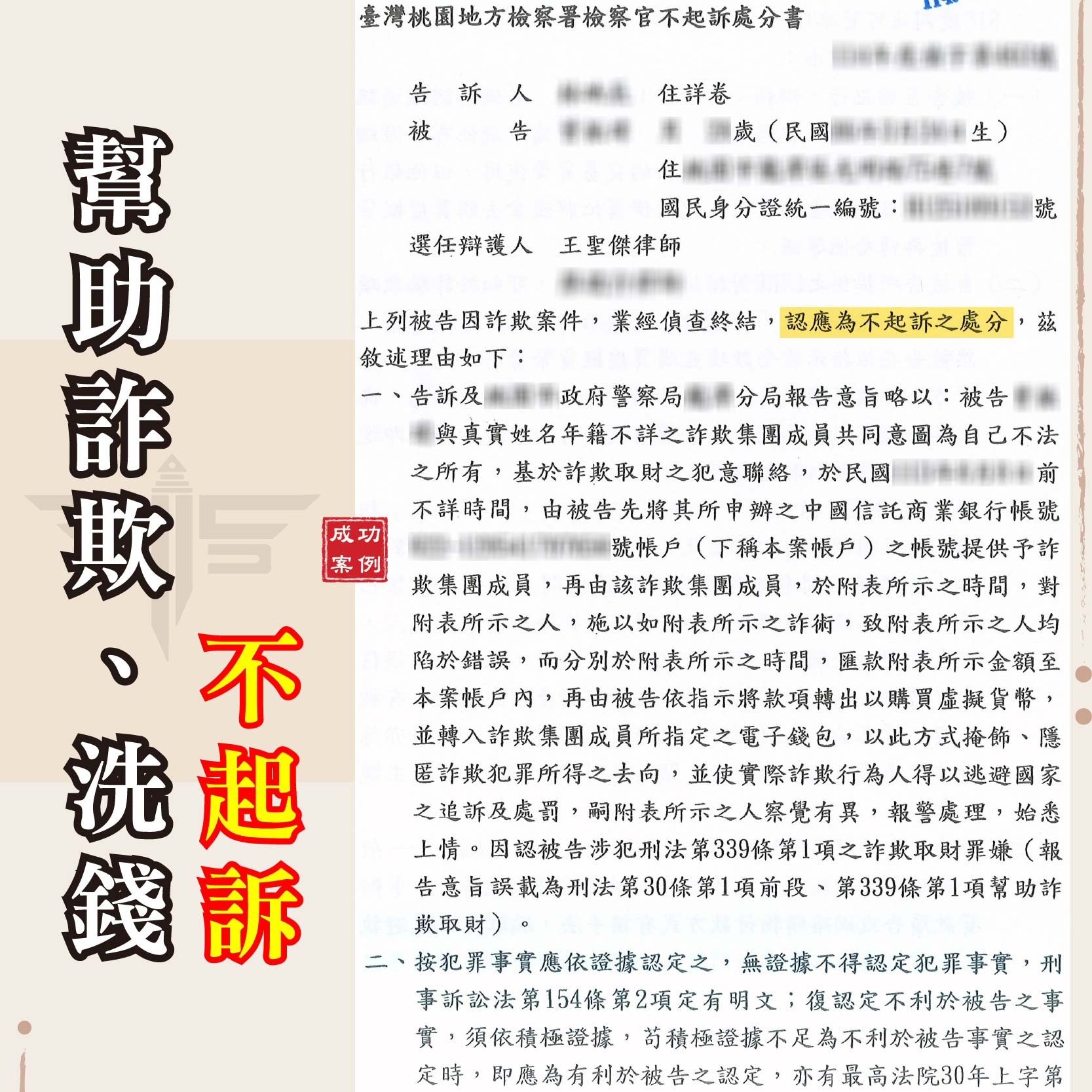 【桃園詐欺案律師推薦!桃園詐欺案件專門處理律師】感情詐騙成警示戶,經專業律師辯護獲不起訴