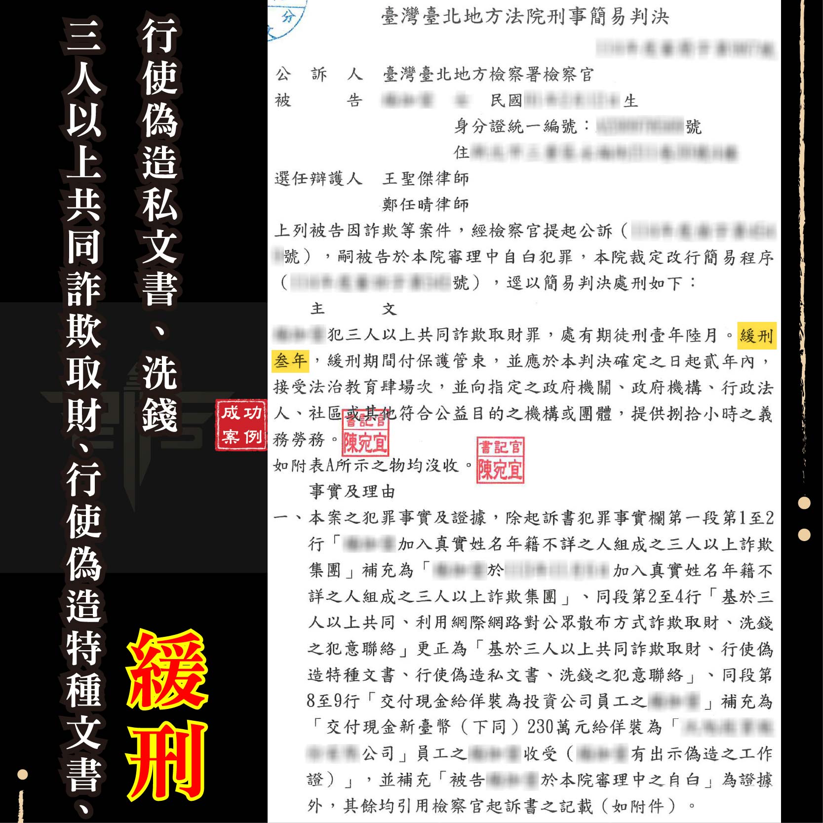 謙聖緩刑案例分享