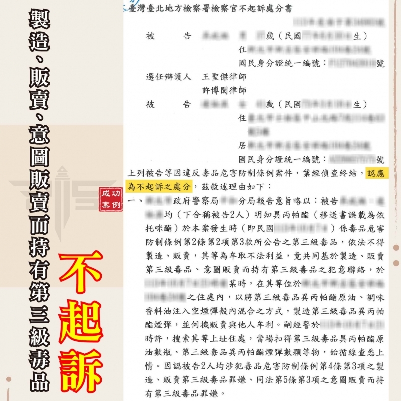 2025/12/31案情過程:本所近日成功為一位被控「販賣二級混合毒品未遂」的當事人,在面臨重罪起訴的巨大壓力下,透過王聖傑律師與高文洋律師的精準辯護,成功說服法官,為當事人爭取到有期徒