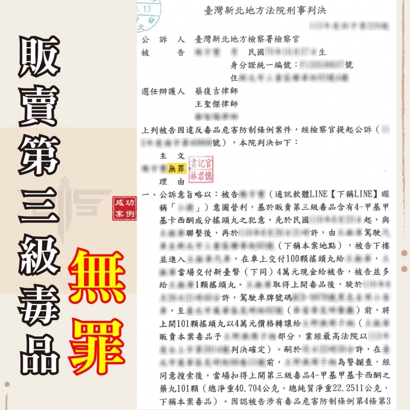 2025/09/09案情過程:在毒品案件中,若涉及多次販賣行為,往往會面臨數罪併罰、刑度大幅增加的風險。本所近期承辦的一件案件中,當事人同時被認定有 10 次販賣第三級毒品行為,若逐條合
