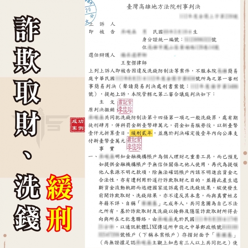 2025/11/10案情過程:當事人因一時失慮,擔任了面交車手的角色,在整個過程中,當事人並未主動策劃或主導事件發展,僅是受他人指示而參與其中,對於整體事件的運作細節與資金流向並不清楚。