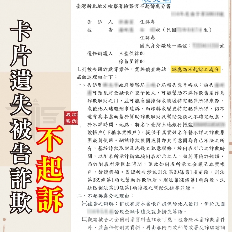 2026/03/26案情過程:「我的提款卡真的不見了,密碼是為了怕忘記才寫在上面的,為什麼檢察官就是不相信我?」在處理人頭帳戶、詐欺案件的實務經驗中,「提款卡遺失」往往被視為最難打的抗辯