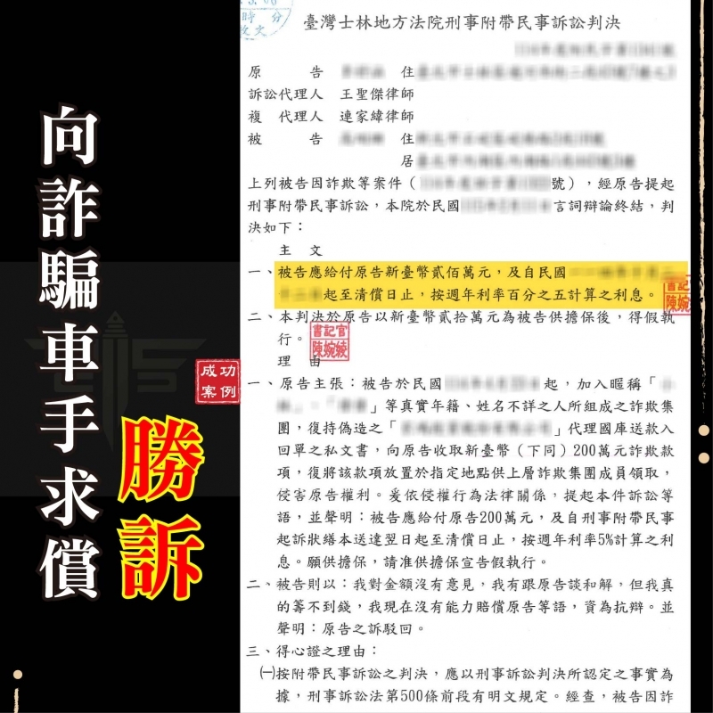 2026/03/12案情過程:您是否也曾是詐騙集團的受害者,眼睜睜看著畢生積蓄被騙走,卻求助無門?當您以為錢拿不回來時,其實法律提供了一條追討的道路。謙聖國際法律事務所近期成功協助一位當
