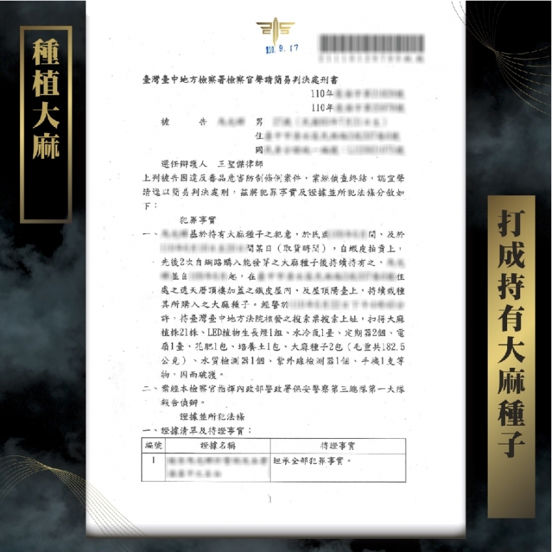 2021/09/30案情過程: 這是發生在「台中」的毒品案件 當事人特地北上找到專門處理毒品案件的謙聖, 希望能讓最了解毒品案件的謙聖,幫忙度過