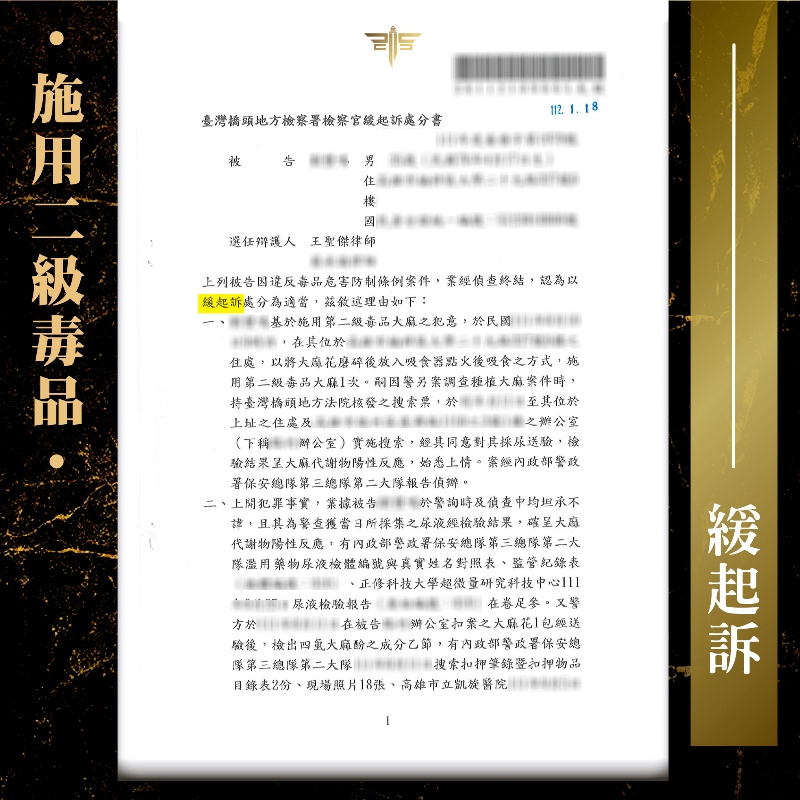 2023/02/03案情過程: 這是發生在桃園的施用毒品案件,當事人好不容易完成戒癮治療,但卻在緩起訴期間內、定期採尿時,再次被驗到第一級毒品陽性反應!