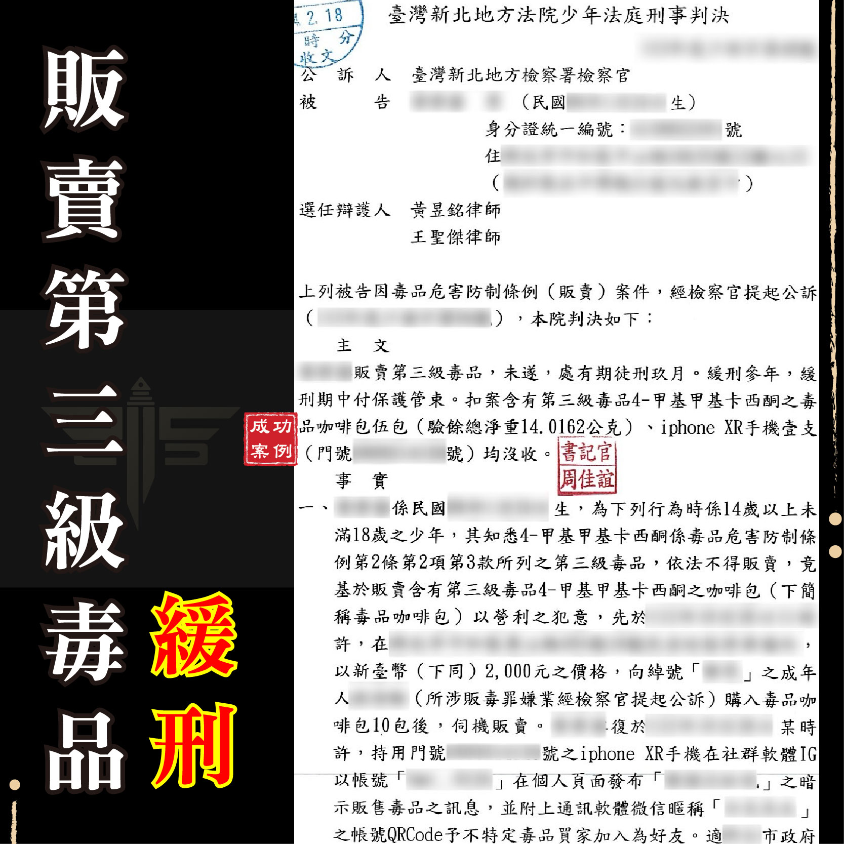 【未成年販賣毒品成功爭取緩刑】未成年販毒被釣魚,經律師辯護成功爭取九個月並且拿下緩刑