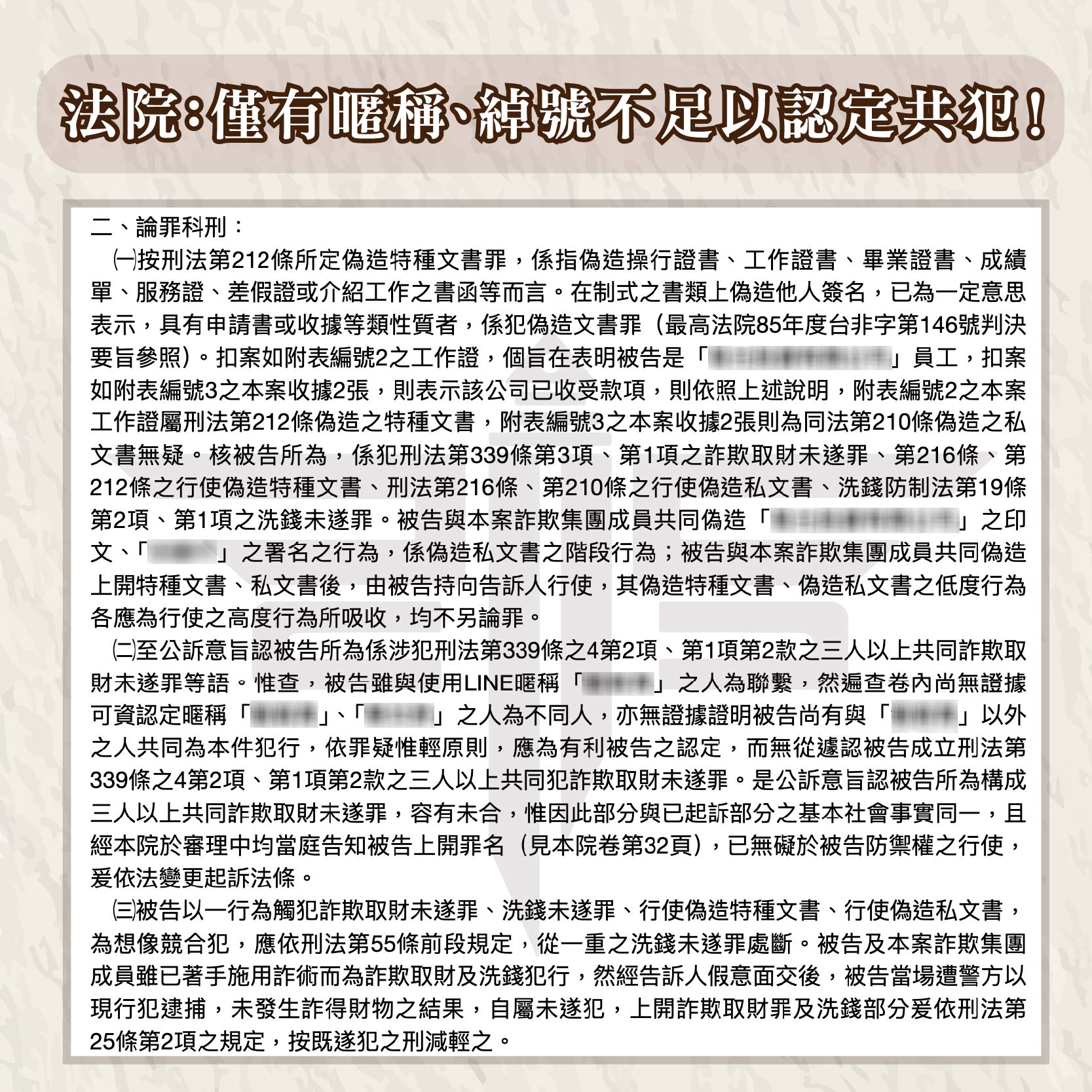 • 強調檢方舉證不足:刑事審判強調「證據裁判」,如果檢方無法證明這些暱稱背後確實是不同的人,就無法成立三人以上共同詐欺。