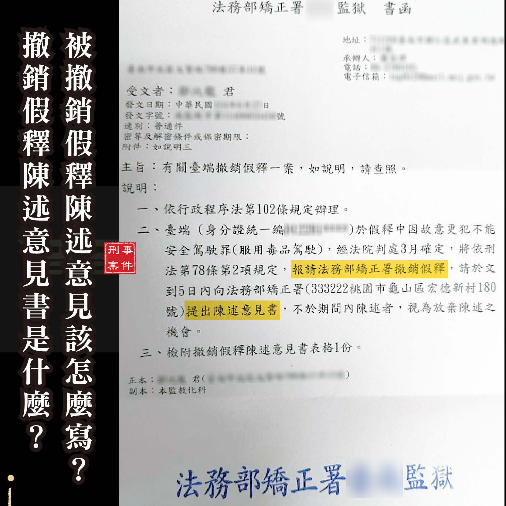 撤銷假釋陳述意見書是什麼?被撤銷假釋陳述意見該怎麼寫?專門處理撤銷假釋律師推薦!!