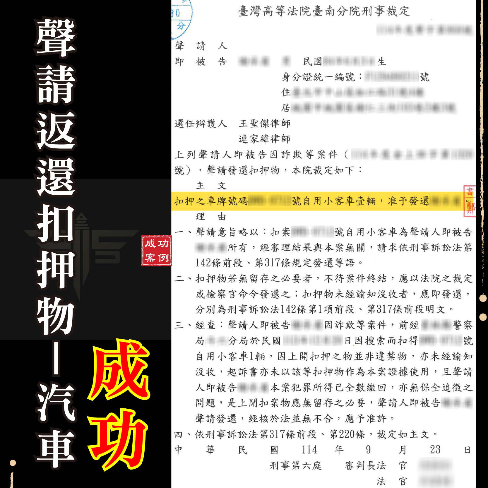 車輛被扣押怎麼拿回來?律師爭取發還扣押車輛,被扣車輛獲法院裁定發還