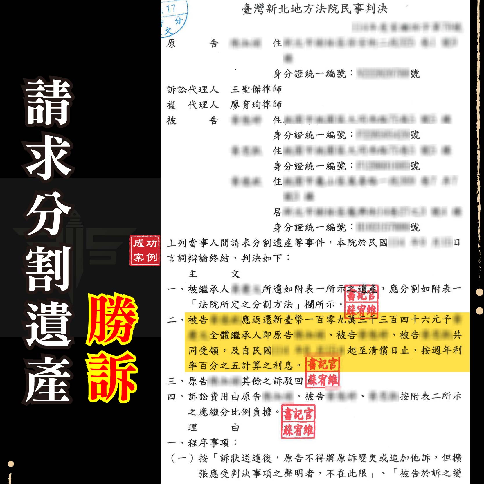 謙聖國際法律事務所成功案例(1141014-1141017)