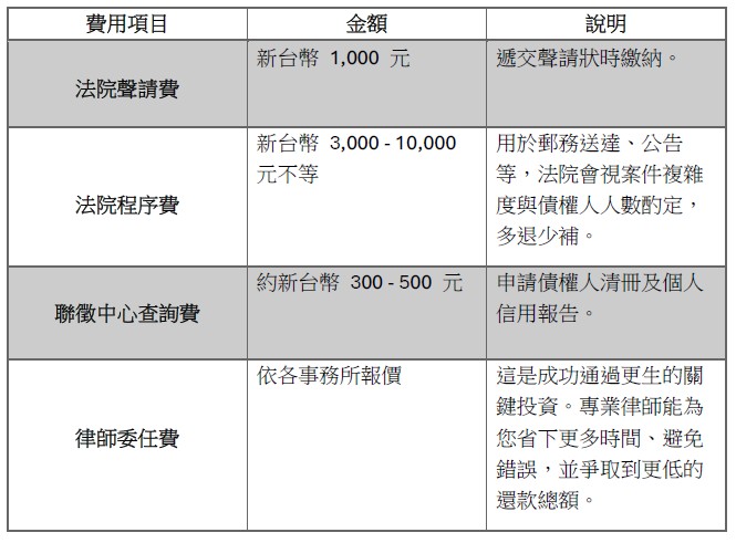 「聲請更生會不會很貴?」這是許多人卻步的原因。事實上,相較於可能減免的龐大債務,更生程序的法定規費並不高。