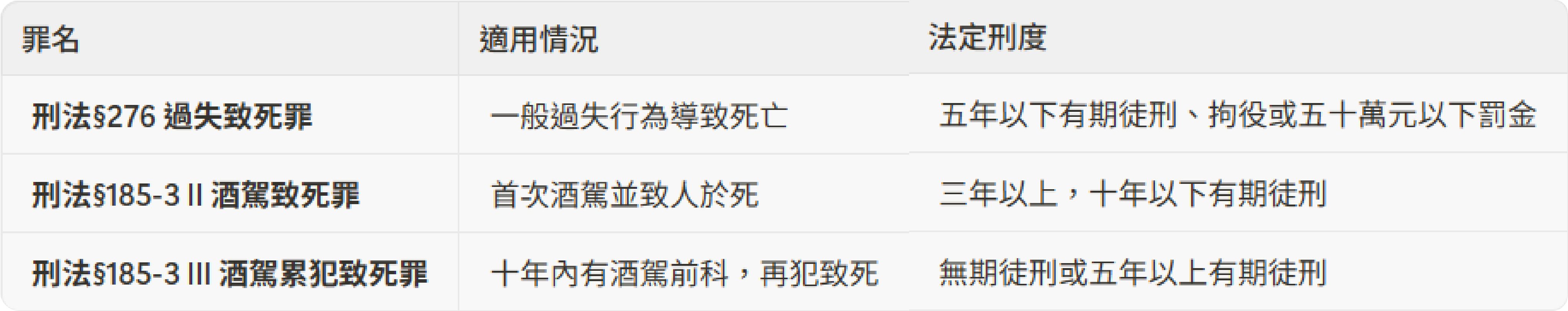 因而致人於死者,處三年以上十年以下有期徒刑,得併科二百萬元以下罰金;致重傷者,處一年以上七年以下有期徒刑,得併科一百萬元以下罰金。這是本文討論的核心。一旦酒駕行為造成了死亡結果,刑罰的起點直接從「三年」開始,最高可達「十年」。這與一般的過失致死罪(刑法第276條,最高刑度為五年)有著天壤之別。立法者明確地告訴我們:酒駕撞死人,不是普通的「不小心」,而是一種更應受譴責的嚴重犯罪。