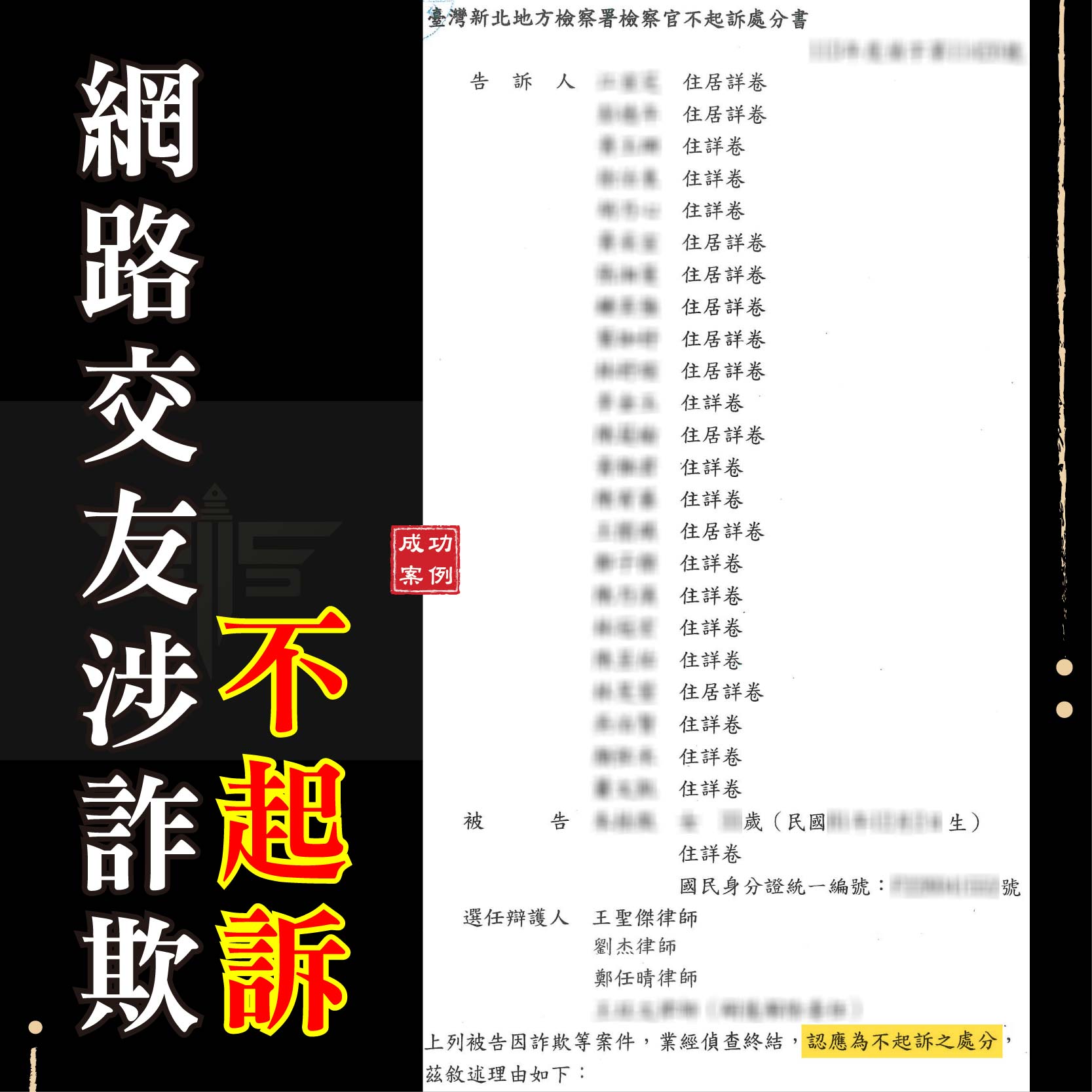 刑事案件不起訴成功案例: