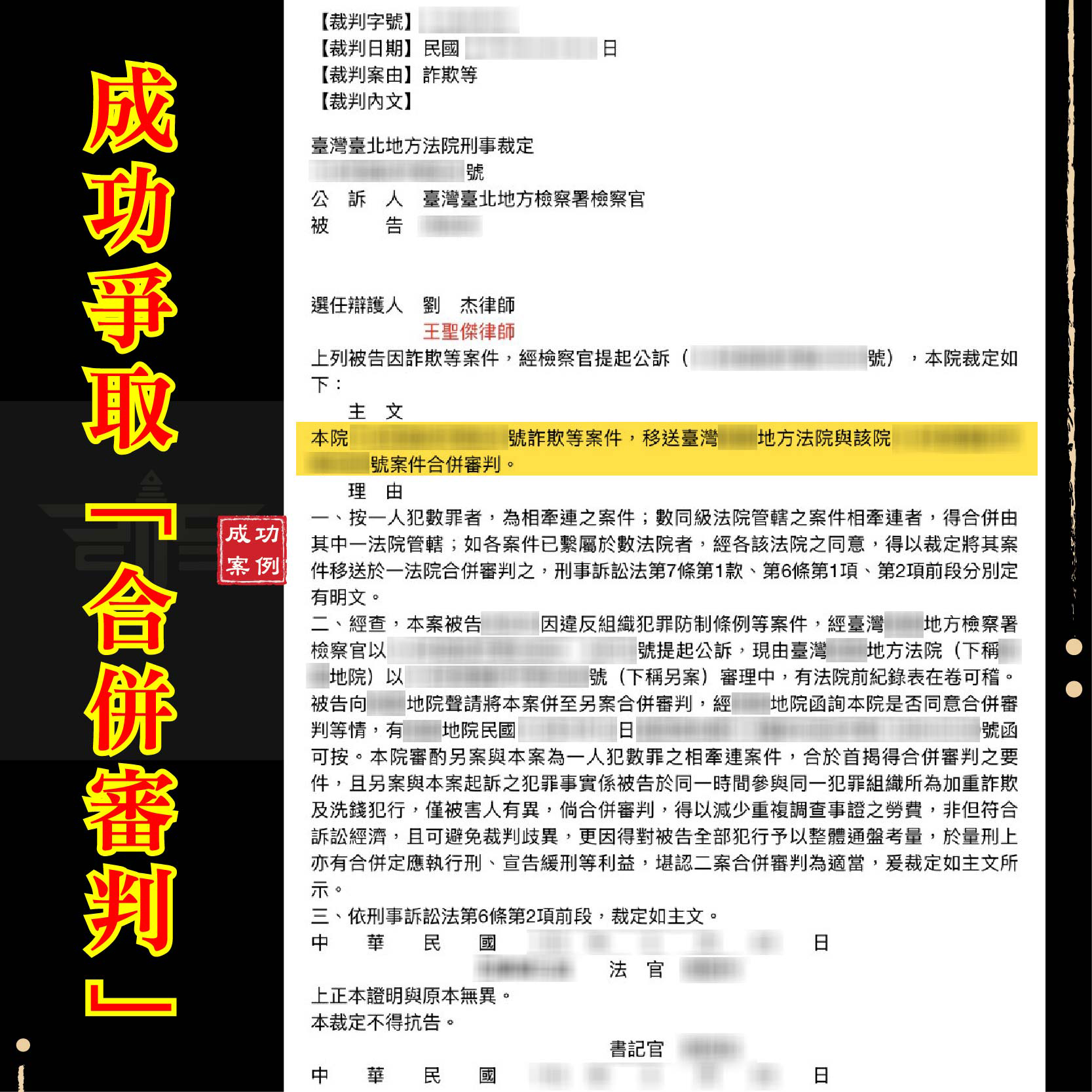 爭取合併審判成功案例: