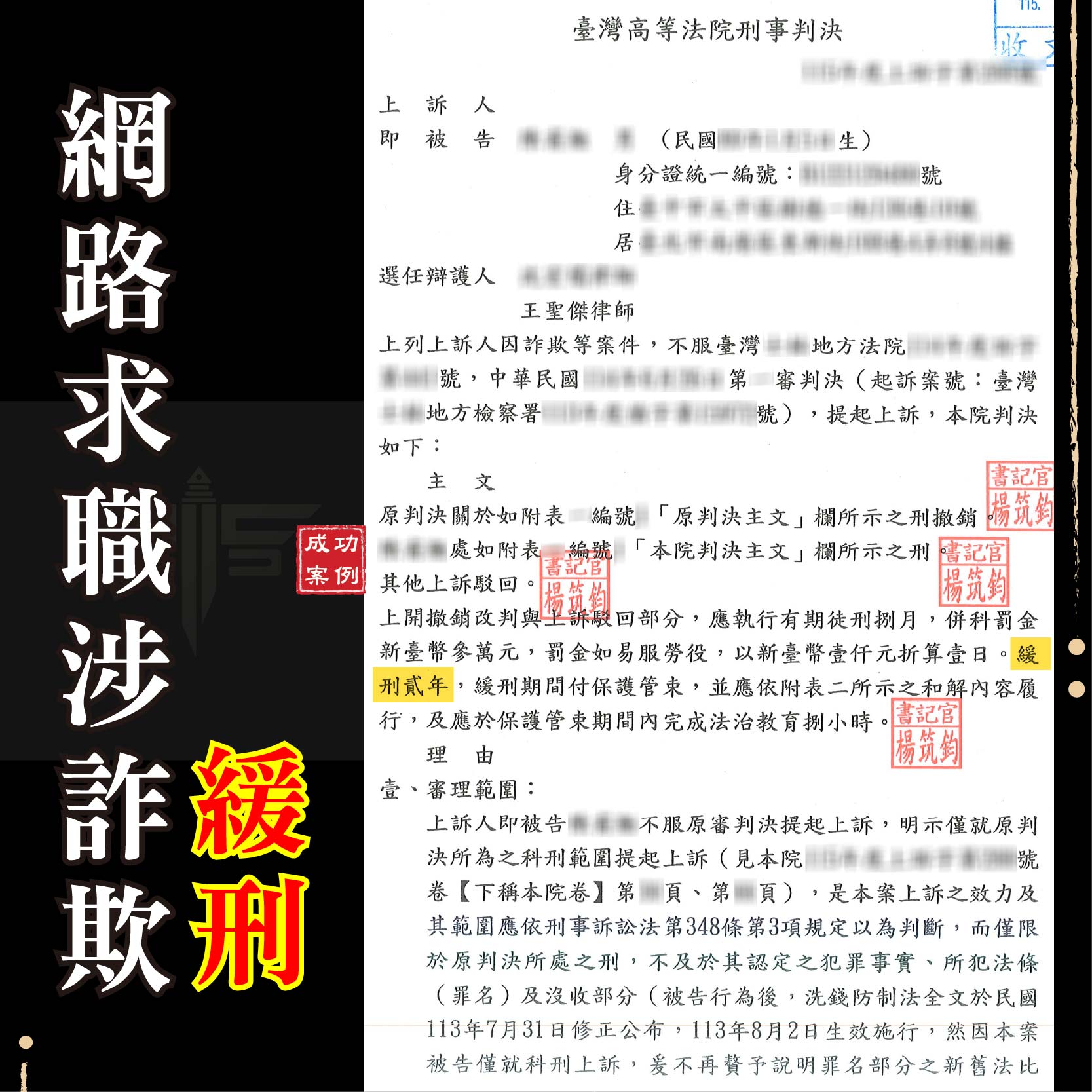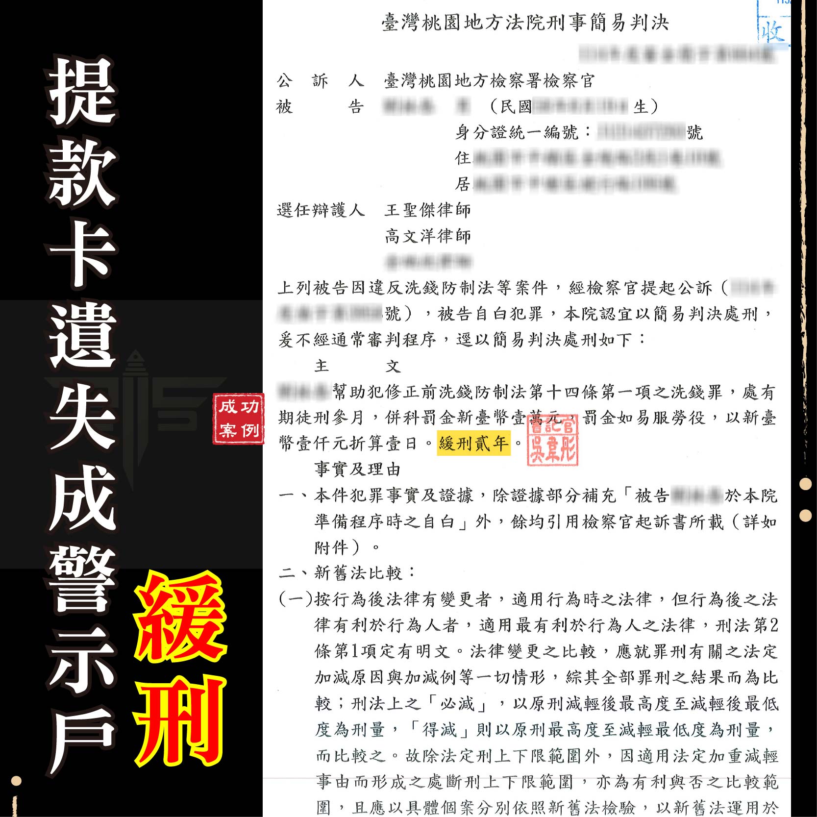 刑事案件緩刑成功案例: