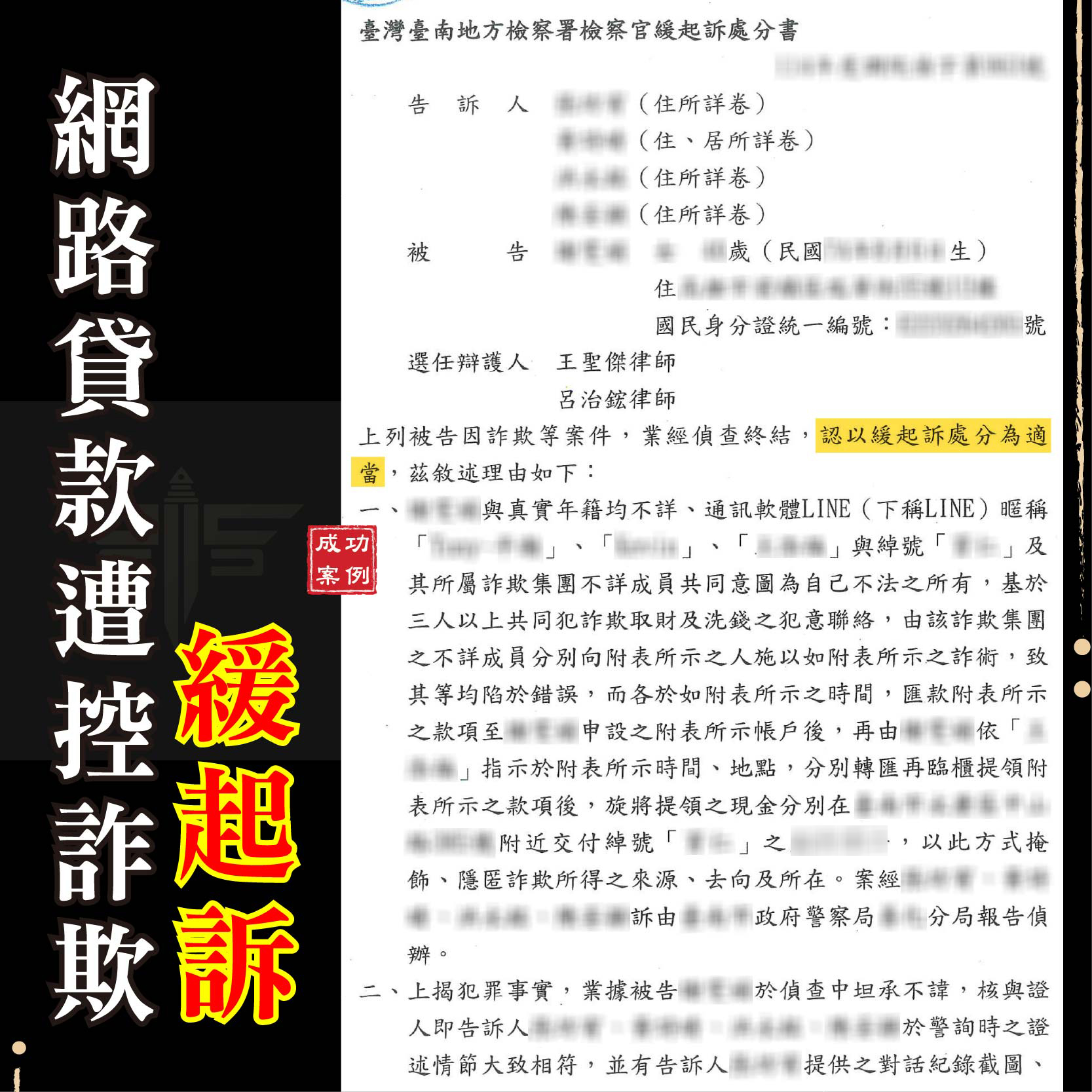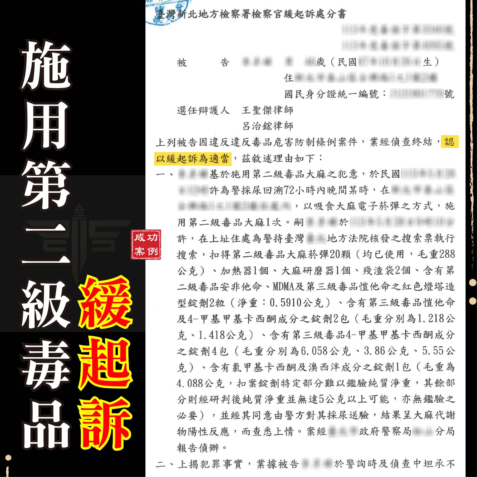 刑事案件緩起訴成功案例: