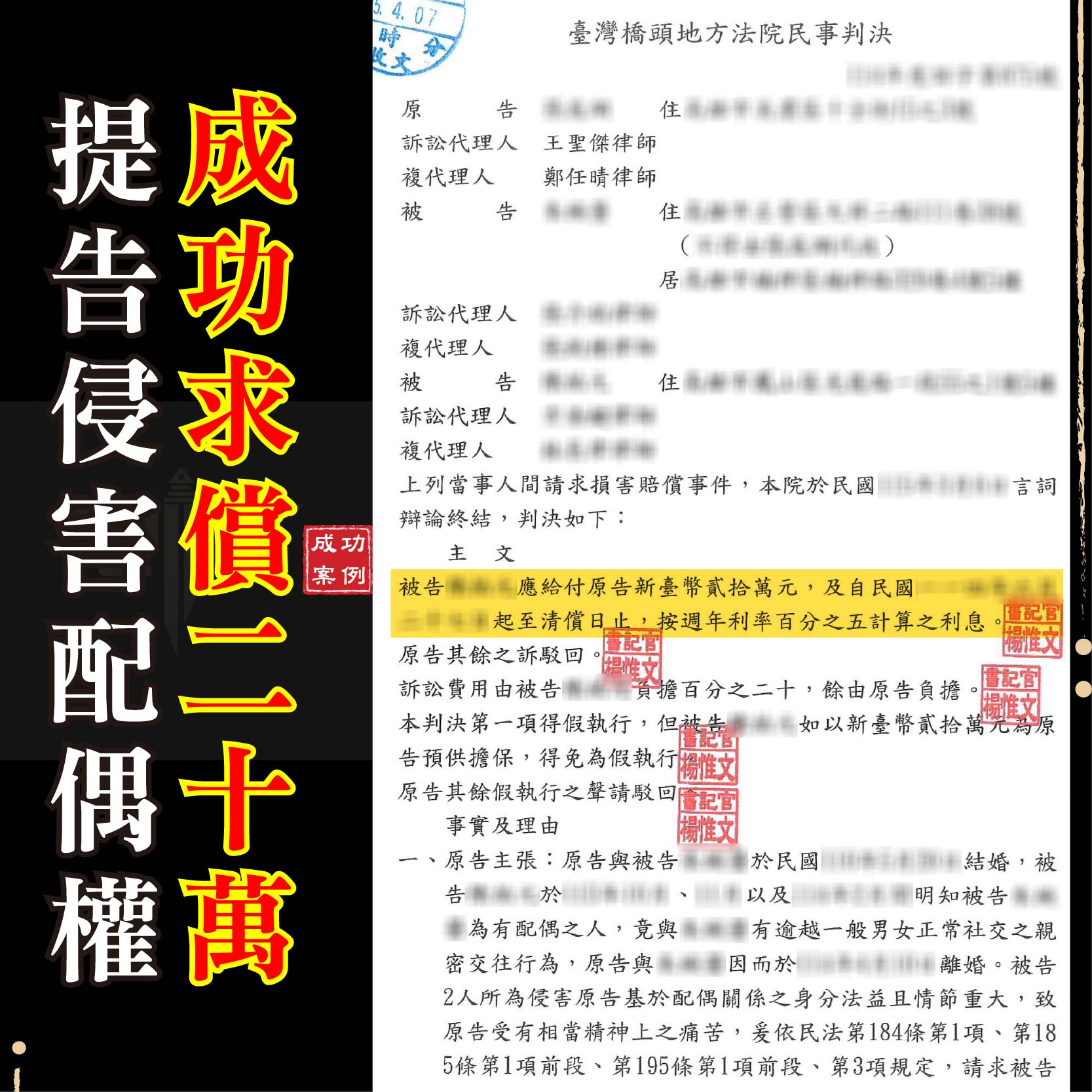 侵害配偶權成功案例: